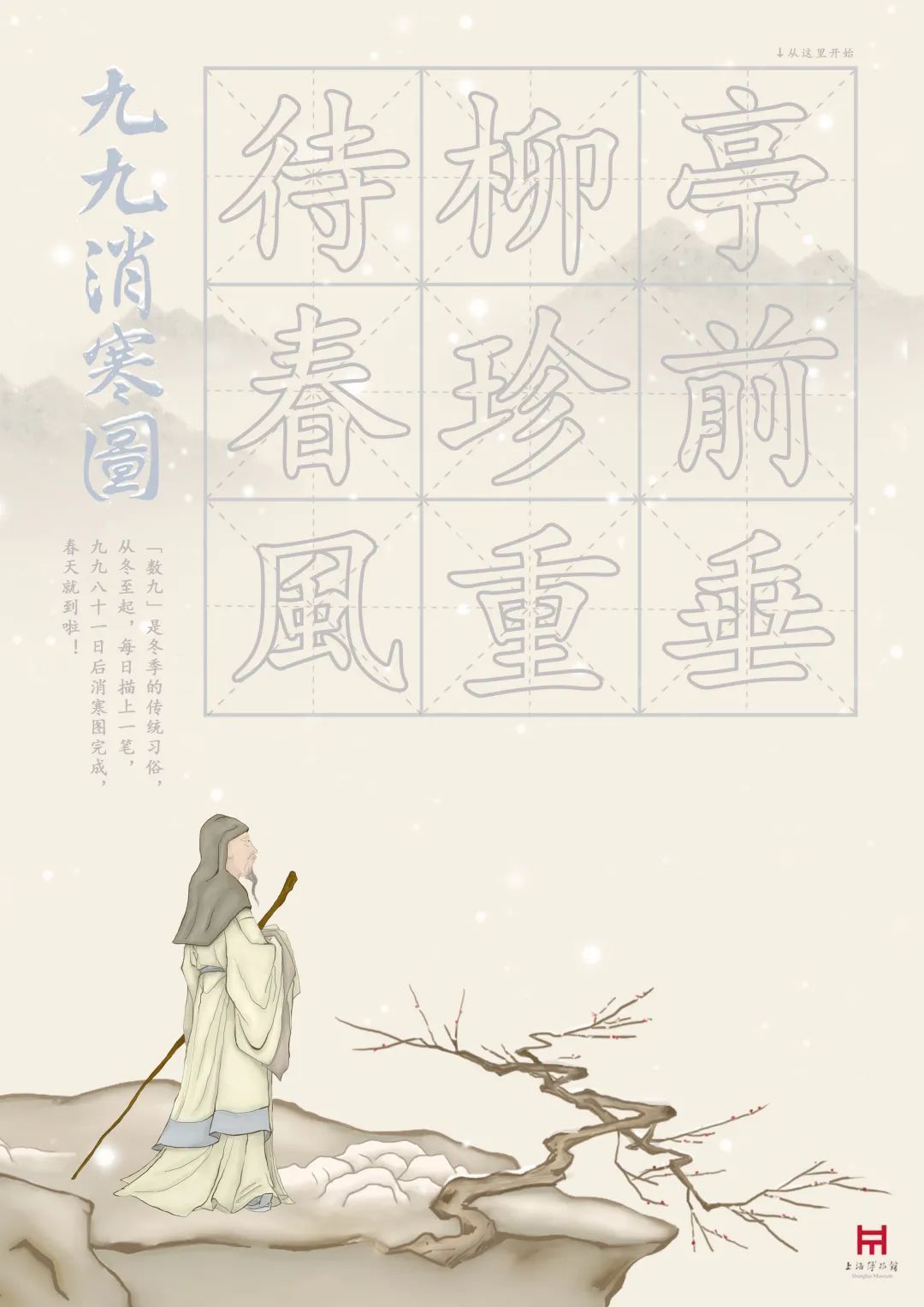 冬至から9画の漢字9文字で書かれた詞を毎日一画ずつ書いていきます。