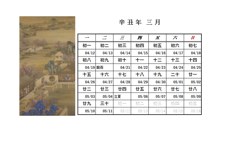 『雍正十二月行楽図軸』の『三月賞桃』です。