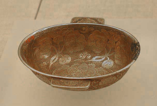 唐代的鎏金蔓草鸳鸯纹银羽觞,1970年陕西西安何家村出土
