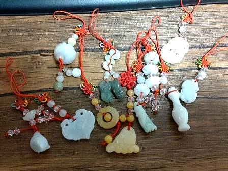 赤い紐や銀の鎖に繋げて出産祝いにします。